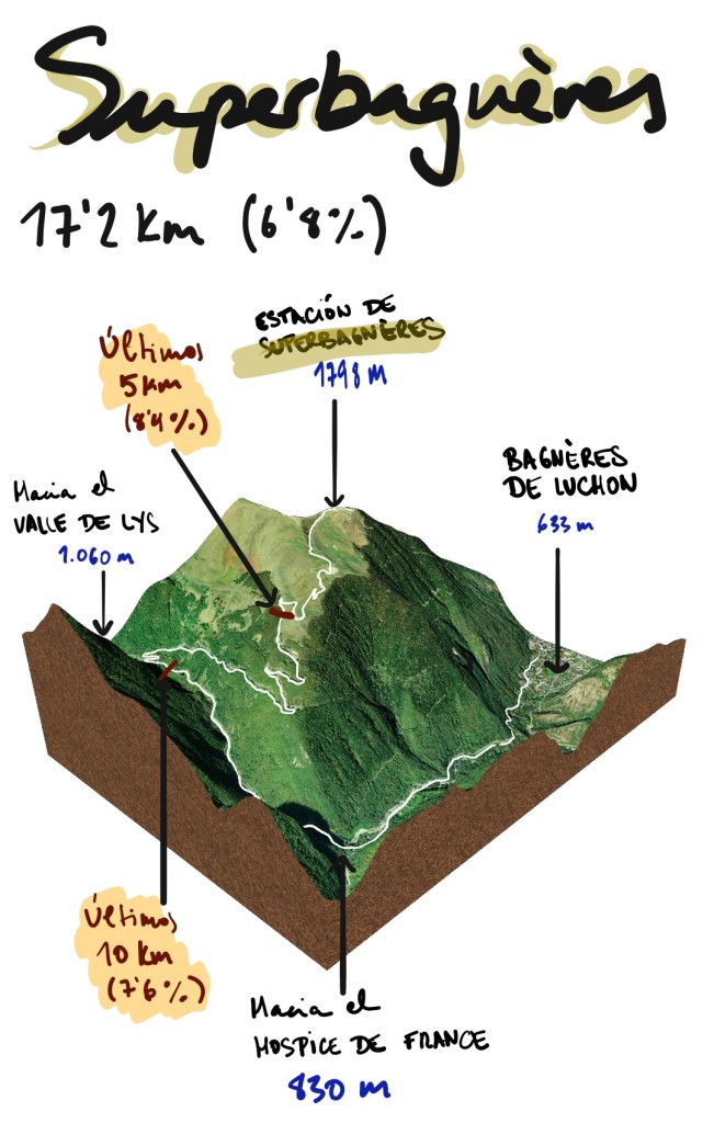 Por circunstancias difíciles de comprender -de explicar- nunca antes, hasta este verano, había subido a Superbagnères, la estación de esquí que domina Luchon. La idea original -mucho más ambiciosa- era combinar en un día tres de las ascensiones que rodean Bagnères-de-Luchon, y así ascender Superbagnères, el Portilhon y Peyresourde o Balès. Pero eso no llegó a suceder. De momento.